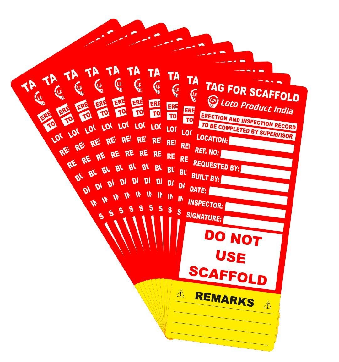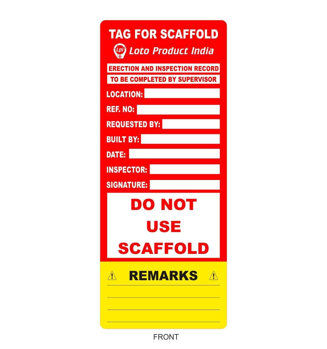 SCAFFOLDING INSERTION TAG WITH ERECTION & INSPECTION RECORD”DO NOT USE SCAFFOLD”